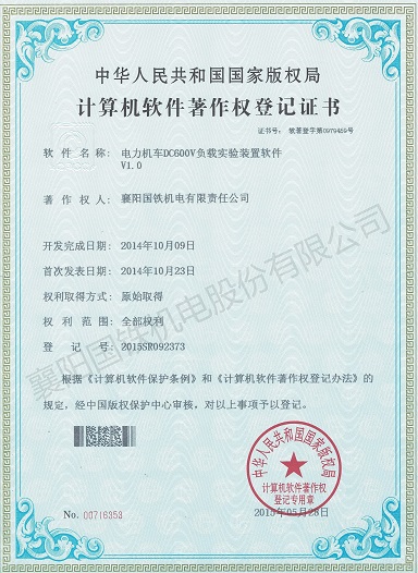 電力機(jī)車DC600V負(fù)載實驗裝置軟件(軟件著作權(quán)證書)